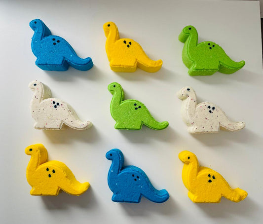 weiße Dinosaurier Badebombe mit Punkten