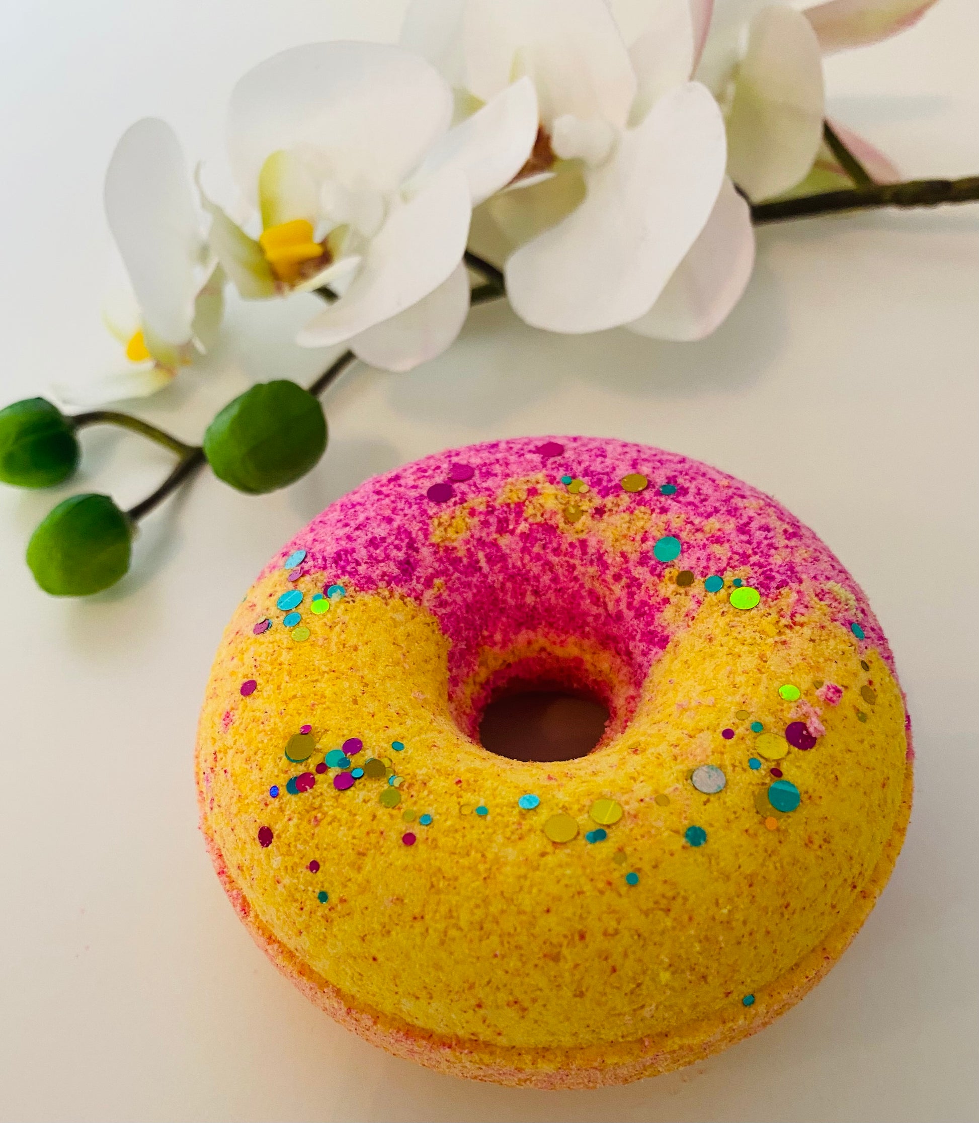 Dieser große Badebomben Donut ist genau das Richtige für Kinder. Sie lieben es Spaß in der Badewanne zu haben. Sie wurden aus hautfreundlichen Zutaten extra für Kinder hergestellt und duften nach Sweet Orange.